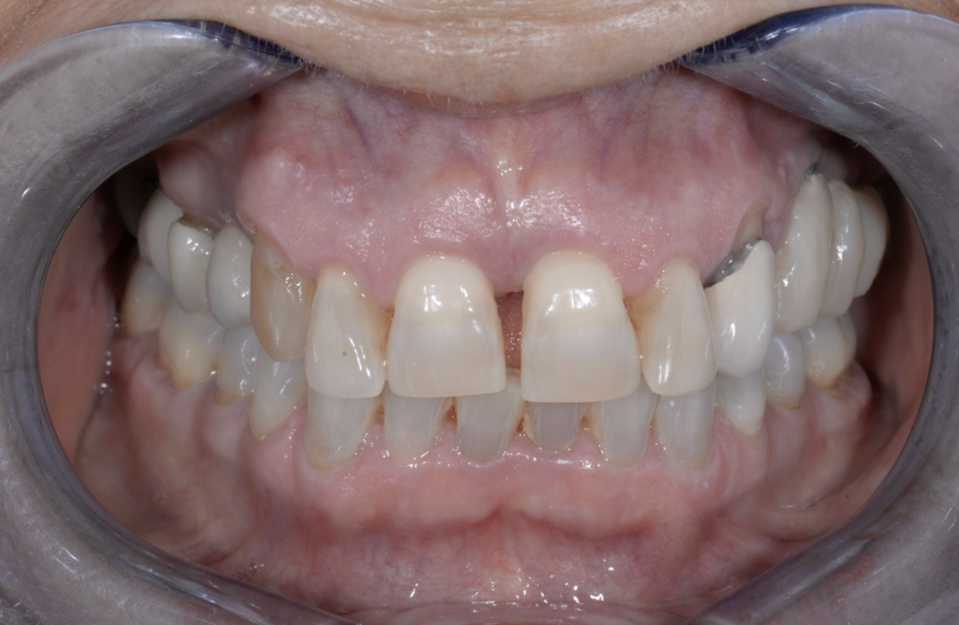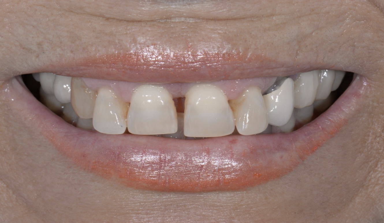 Pacient amb malposició dental i espais entre dents. També presenta mal ajustament de la corona del caní superior esquerre. Es fa tractament totalment ceràmic.